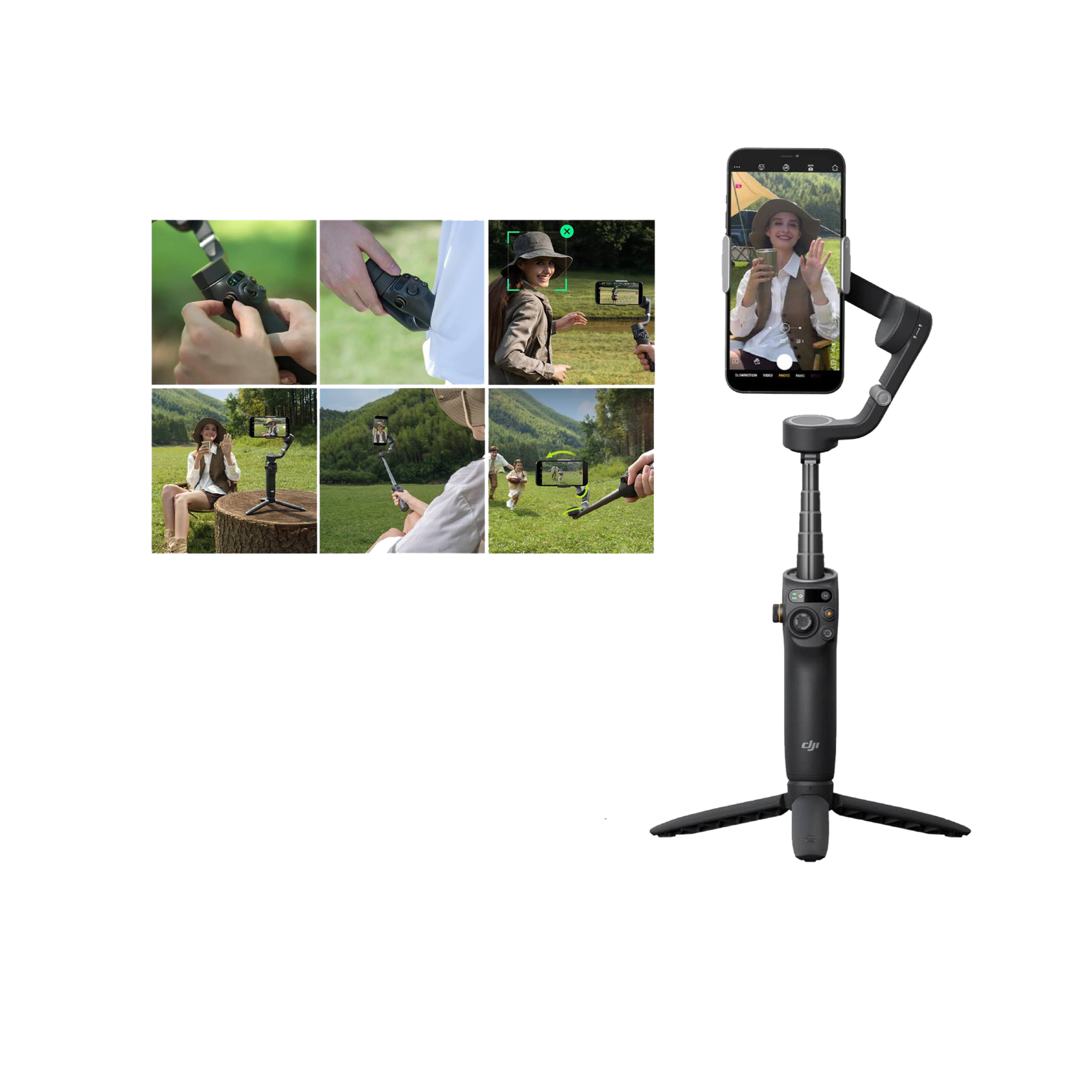 The Osmo Mobile 6 features a compact, foldable body and magnetic quick-release clamp, making it easy to carry and set up instantly.