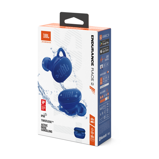 The JBL Endurance Race 2 (Part Number: JBLENDURACE2BLU) delivers bold audio with JBL Pure Bass, ensuring deep bass and clear highs for workouts and everyday listening.